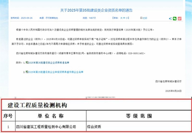 近日,华西集团城市更新全产业链一体化能力实现战略升维——省建科院下属检测中心成功取得全省首张建设工程质量综合检测资质(以下简称“综合资质”)。作为行业最高等级认证,综合资质覆盖建筑材料及构配件、主体结构及装饰装修、钢结构、地基基础、建筑节能、建筑幕墙、市政工程材料、道路工程、桥梁及地下工程9大专项,全面贯通建设工程检测全周期、全链条,为华西打造“城市更新四川模式”构筑质量与公信力基石。